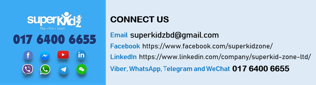 Address Plot 81 Rd 3 Blk C Bashundhara Dhaka 1229 Bangladesh TELEPHONE: +880 17 6400 6655 EMAIL: [email protected] website www.superkidz.net get in touch I agree that my submitted data is being collected and stored. Send Message